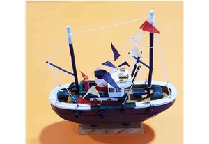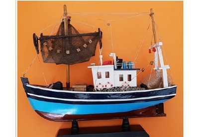 Barca Peschereccio In Legno Tonno Mare Modellino Artesania 29x32x10